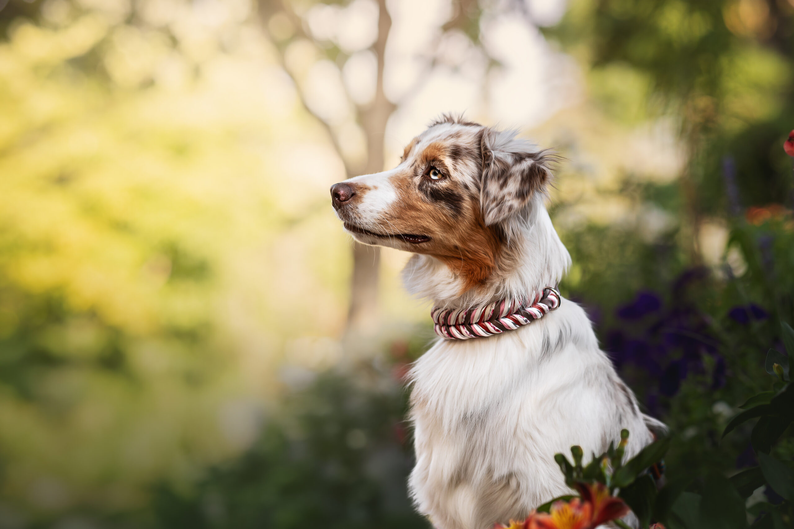 Natürlich schön, mit einem Hauch Nostalgie – „Peach’s Floral Whisper“ vereint erdige Taupetöne mit zartem Altrosa und liebevoller Blumenkordel. Ein Design, das an blühende Gärten, verwunschene Pfade und die Wurzeln echter Verbindung erinnert. 🌸🐾